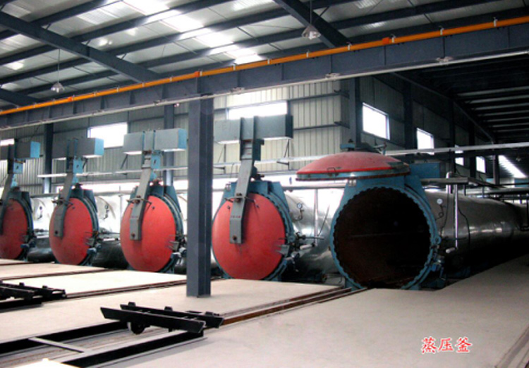 在加氣線中,切割好的坯體,進(jìn)入蒸壓釜進(jìn)行蒸養(yǎng),使磚達(dá)到一定的硬度。